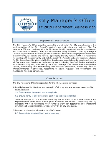 the community, its’ citizens and visitors. Specifically, the City Manager’s Office is responsible