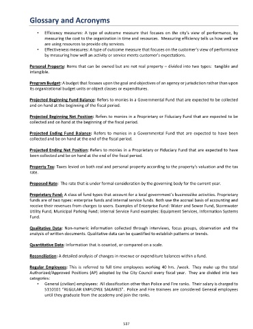 • Efficiency measures: A type of outcome measure that focuses on the city’s view of performance, by
