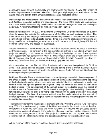 Street Reconstruction Fund.  Major street projects for FY2019 include Cason Bridge, Joy Lee,
