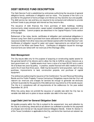 obligation bonds, certificates of obligation and tax notes. The purpose of the fund is to