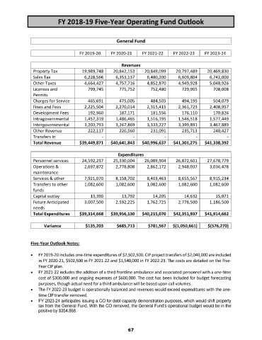 FY 2018‐19 Five‐Year Operating Fund Outlook