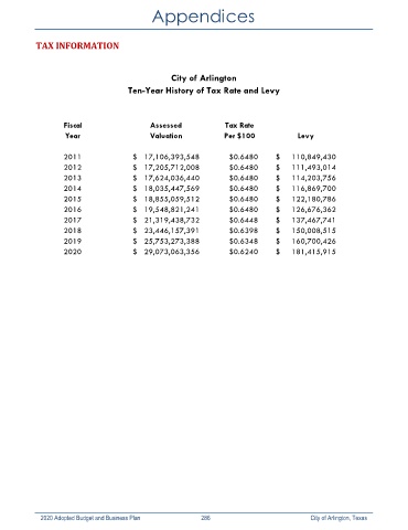 2020 Adopted Budget and Business Plan 286 City of Arlington, Texas