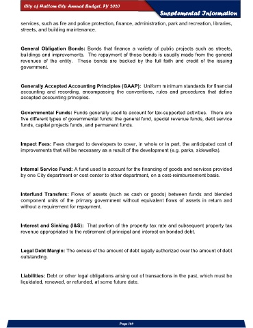 General Obligation Bonds: Bonds that finance a variety of public projects such as streets,