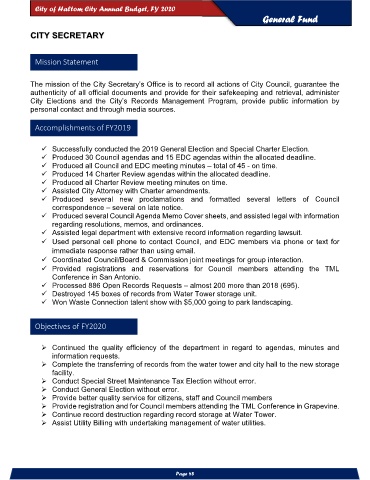 The mission of the City Secretary’s Office is to record all actions of City Council, guarantee the