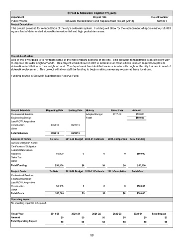 This project provides for rehabilitation of the city's sidewalk system. Funding will allow for the replacement of approximately 50,000