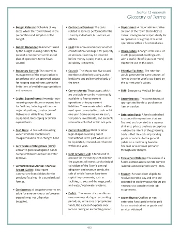 • Budget Calendar: Schedule of key • Contractual Services: The costs • Department: A major administrative