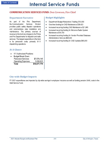 2021 Adopted Budget and Business Plan 210 City of Arlington, Texas