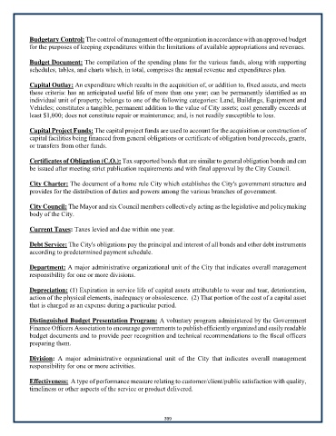 Budgetary Control: The control of management of the organization in accordance with an approved budget