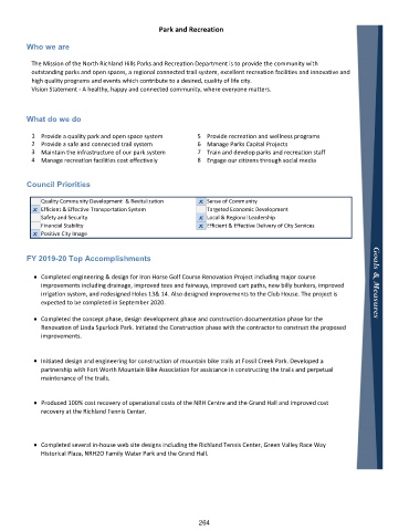 The Mission of the North Richland Hills Parks and Recreation Department is to provide the community with