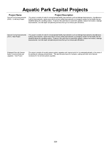 identified during the operating season. Projects in the past have included ADA updates, replacement motors, drainage