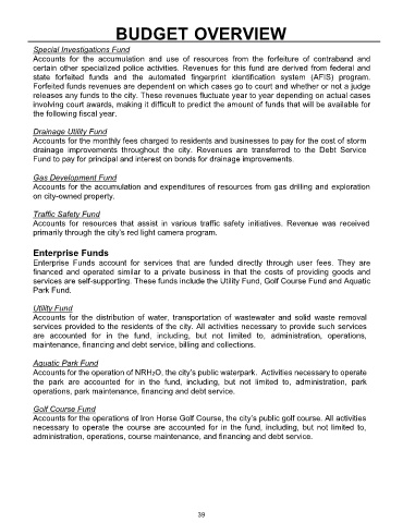 certain other specialized police activities. Revenues for this fund are derived from federal and