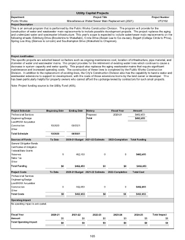 Public Works Miscellaneous Water/Sewer Main Replacement (2021) UT2102