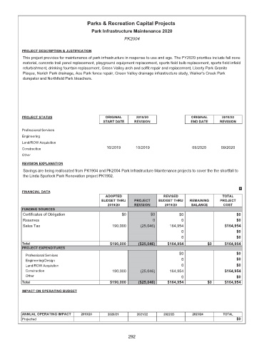 Savings are being reallocated from PK1904 and PK2004 Park Infrastructure Maintenance projects to cover the the shortfall to