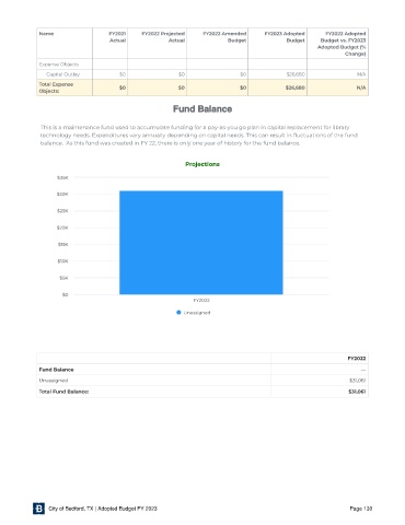 balance. As this fund was created in FY 22, there is only one year of history for the fund balance.