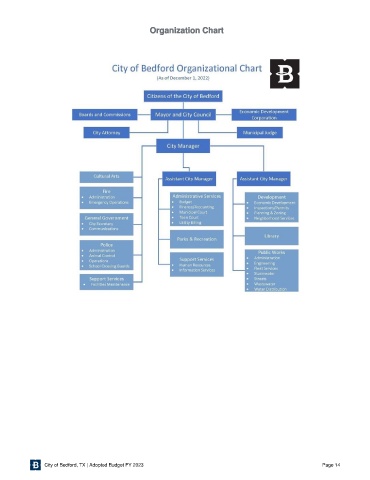 Organization Chart City of Bedford, TX | Adopted Budget FY 2023 Page 14