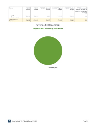 City of Bedford, TX | Adopted Budget FY 2023 Page 145