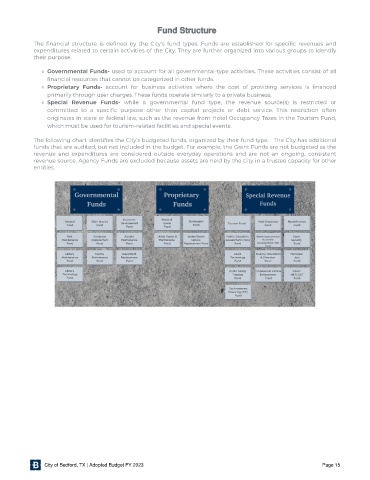 The following chart identi es the City’s budgeted funds, organized by their fund type. The City has additional