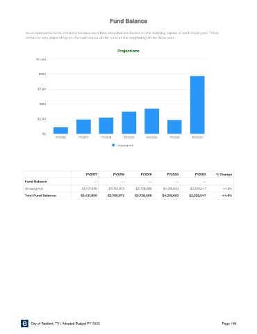 As an enterprise fund, the fund balance numbers provided are based on the working capital of each scal year. These
