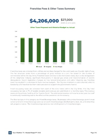taxes has resulted in a decrease in those revenue budgets. The City also maintains a cable channel, which is