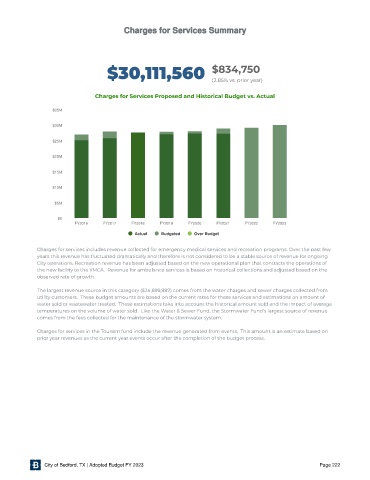 Charges for Ser vices Proposed and Historical Budget vs. Actual