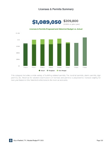 Licenses & Permits Proposed and Historical Budget vs. Actual