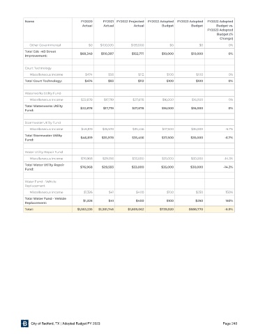 City of Bedford, TX | Adopted Budget FY 2023 Page 240