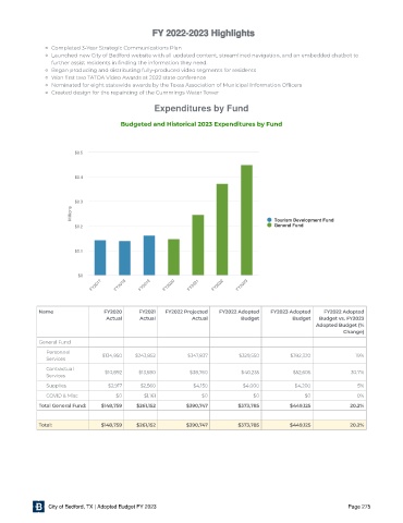 City of Bedford, TX | Adopted Budget FY 2023 Page 275