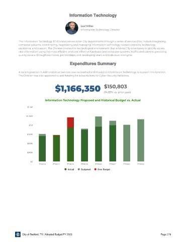 A vacant position in Administrative Services was reclassi ed and moved to Information Technology to support this function.