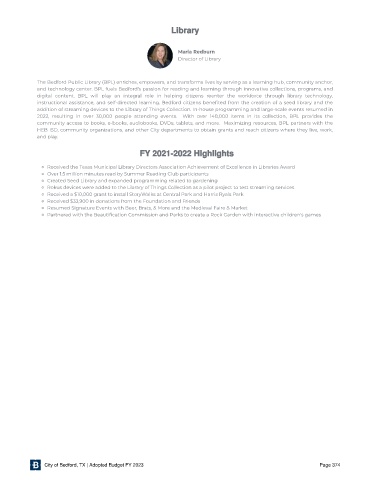 City of Bedford, TX | Adopted Budget FY 2023 Page 374
