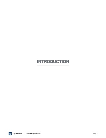 INTRODUCTION City of Bedford, TX | Adopted Budget FY 2023 Page 4