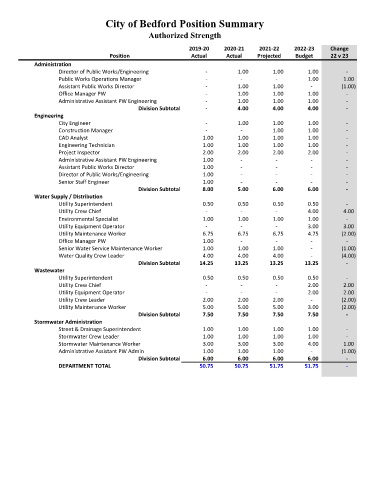 City of Bedford Position Summary