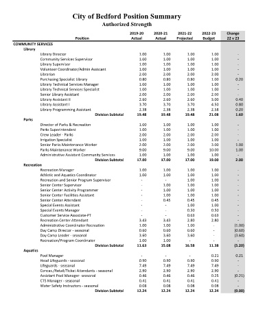City of Bedford Position Summary