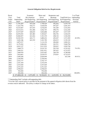 **It is the City's current policy to provide for the payment of the general obligation debt shown from the