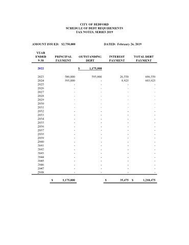 ENDED PRINCIPAL OUTSTANDING INTEREST TOTAL DEBT