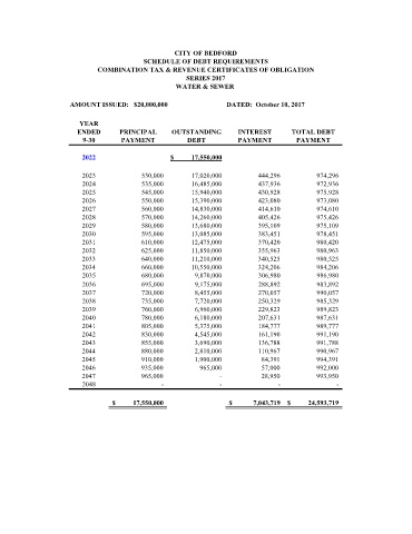 ENDED PRINCIPAL OUTSTANDING INTEREST TOTAL DEBT