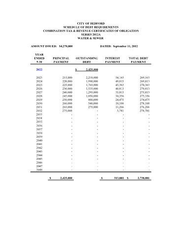 ENDED PRINCIPAL OUTSTANDING INTEREST TOTAL DEBT