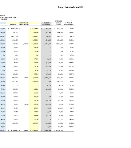 BEGINNING REVENUE EXPENDITURES FY 22-23 ENDING CHANGE IN