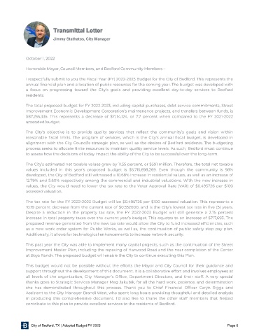 City of Bedford, TX | Adopted Budget FY 2023 Page 6
