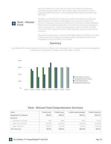 City of Bedford, TX | Proposed Budget FY 2023-2024 Page 181