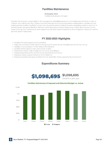 Facilities Maintenance Proposed and Historical Budget vs. Actual
