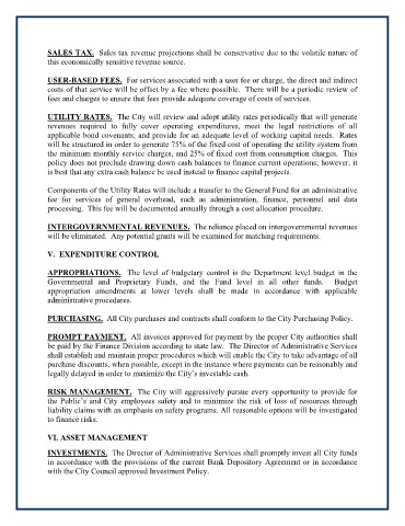 SALES TAX. Sales tax revenue projections shall be conservative due to the volatile nature of