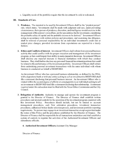 1. Prudence. The standard to be used by Investment Officers shall be the “prudent person”