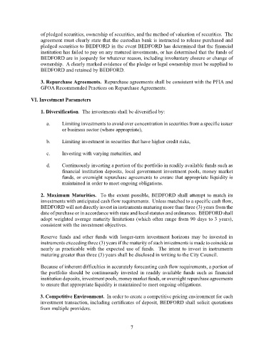 2. Maximum Maturities. To the extent possible, BEDFORD shall attempt to match its