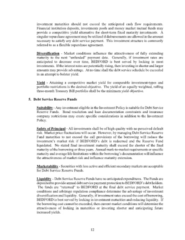 BEDFORD is best served by locking in investment maturities and reducing liquidity. If