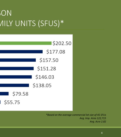 STORMWATER BILL COMPARISON COMMERCIAL - 45 SINGLE FAMILY UNITS (SFUS)* *Based on the average commercial lot size of 45 SFUs Avg. Imp. Area 122,715 Avg. Acre 2.82 NEWGEN STRATEGIES AND SOLUTIONS, LLC 4