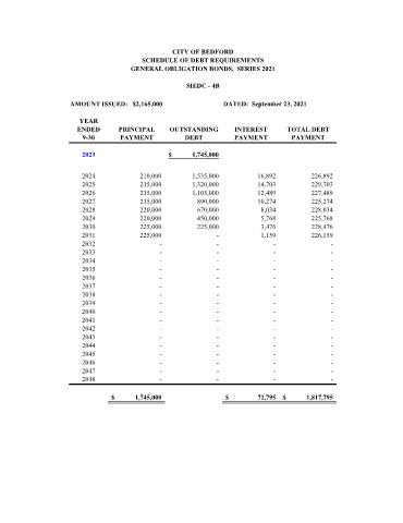 AMOUNT ISSUED: $2,165,000 DATED: September 23, 2021