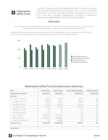 Waterworks Utility Fund Comprehensive Summary