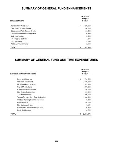 SUMMARY OF GENERAL FUND ENHANCEMENTS