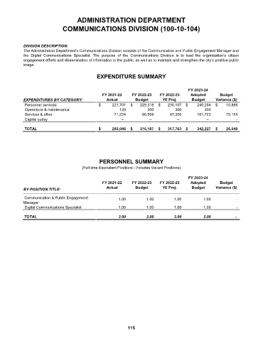 the Digital Communications Specialist. The purpose of the Communications Division is to lead the organization’s citizen