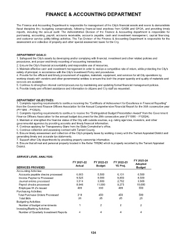 The Finance and Accounting Department is responsible for management of the City's financial assets and seeks to demonstrate